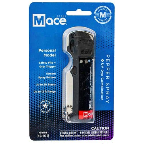 The Mace Personal Model pepper spray is a powerful formulation of OC pepper spray that will quickly shut the eyes, and induce coughing, choking and a burning sensation. This 18 gram unit contains an approximate 20 stream pattern bursts with a reach of 12 feet.